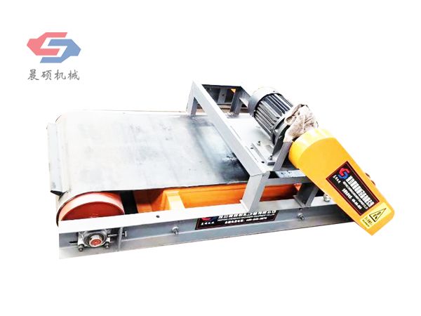 電磁除鐵器的基礎(chǔ)上增加了驅(qū)動(dòng)電機(jī)、滾筒、帶刮板的缷鐵膠帶等組成的缷鐵機(jī)構(gòu)。在工作過程